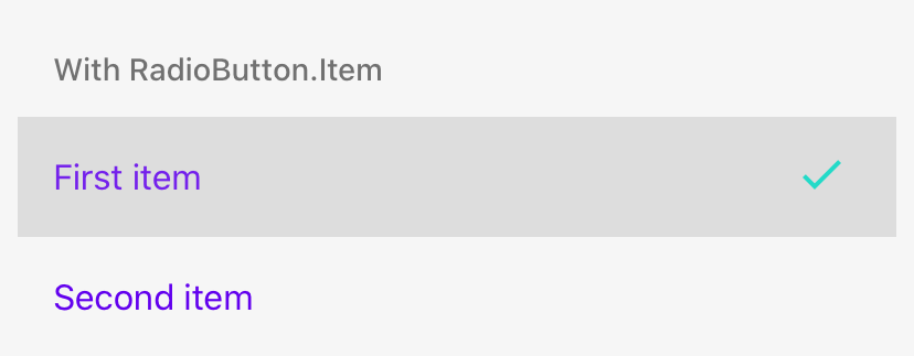 <RadioButton.Item label="First item" value="first" />