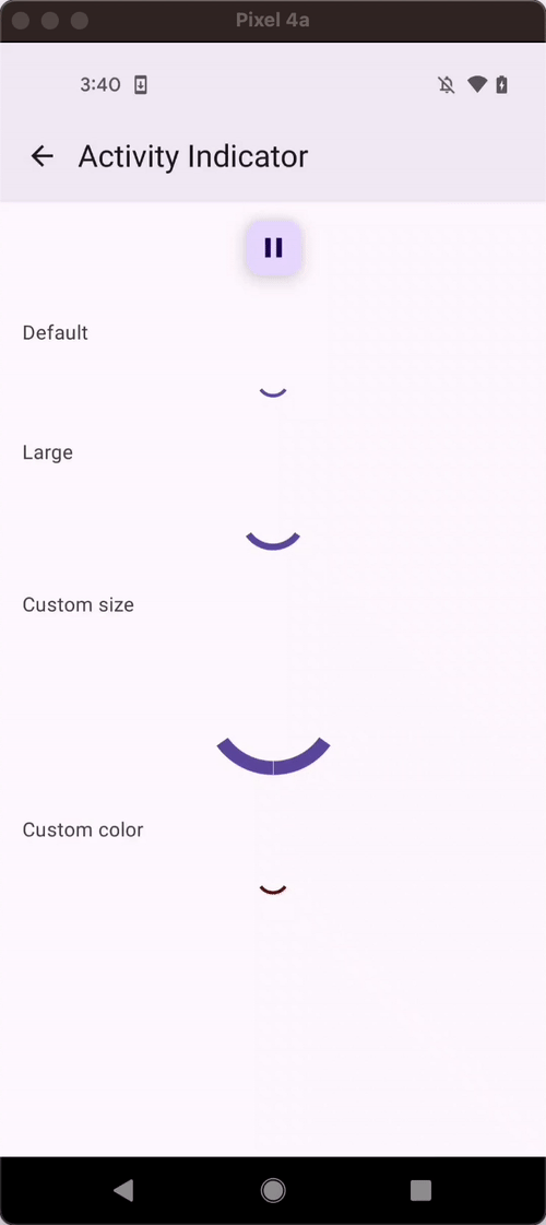 Activity indicator is used to present progress of some activity in the app. It can be used as a drop-in replacement for the ActivityIndicator shipped with React Native.