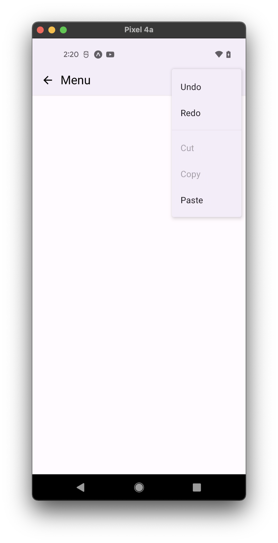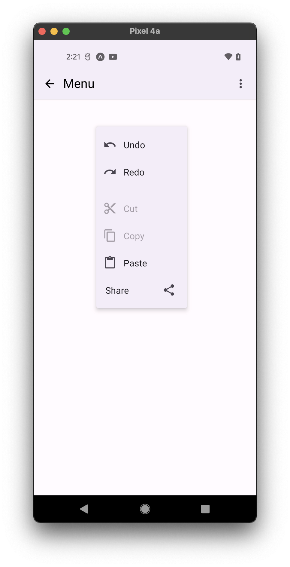 Menus display a list of choices on temporary elevated surfaces. Their placement varies based on the element that opens them.